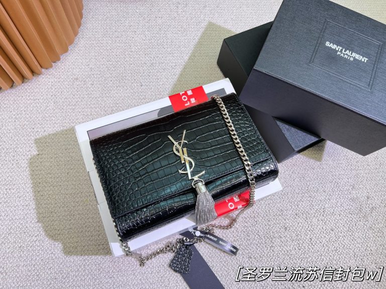 YSL Saint Laurent Tassel Envelope BagCrocodile pattern cowhide fabric
