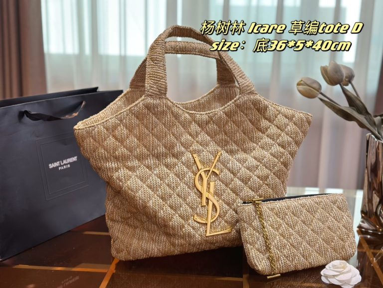 Saint Laurent ysl straw tote shopping bagIn fact, straw bags have always been popular. They are beautifully designed and have a retro feel. I will take them with me when I travel and go on vacation, because the khaki straw color matches well with the distinctive design of the building, and also goes well with the long skirts worn on vacation. Very matching, add a straw hat, perfect holiday style