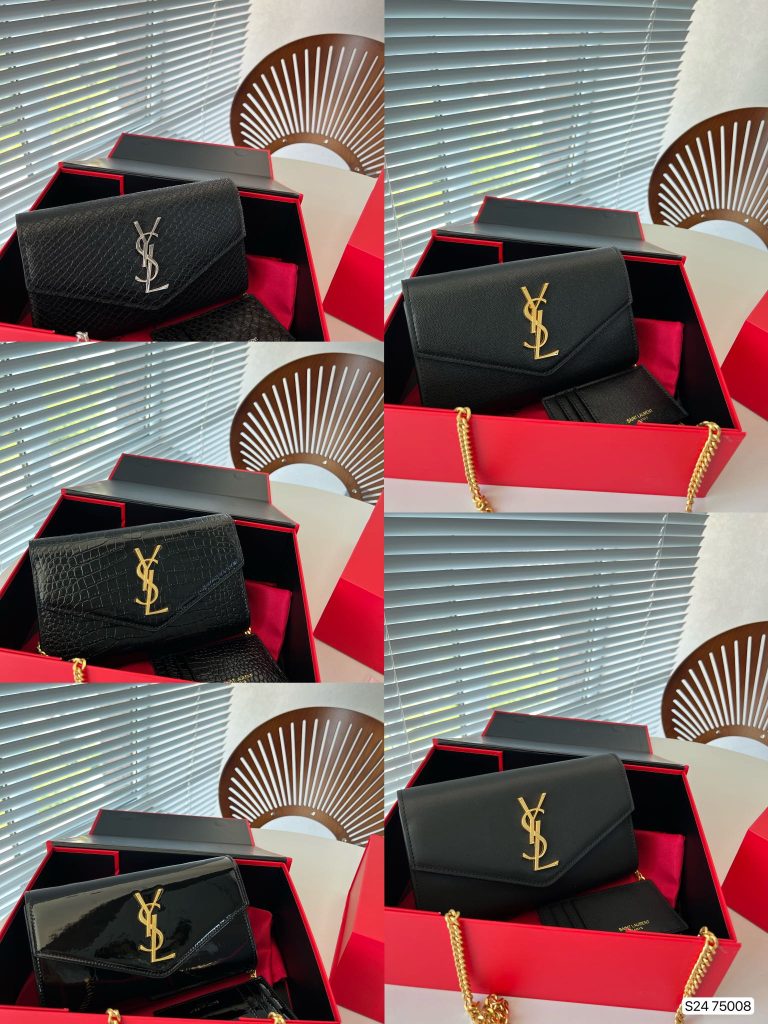The Saint Laurent envelope bag with folding box continues the elegant and independent temperament of the YSL girl. The new Gaby handbag adopts an envelope-style flap and a neat body. The simple black and white tones can be switched between daily casual or party dinners. Size: 22 14 Item No. 75008