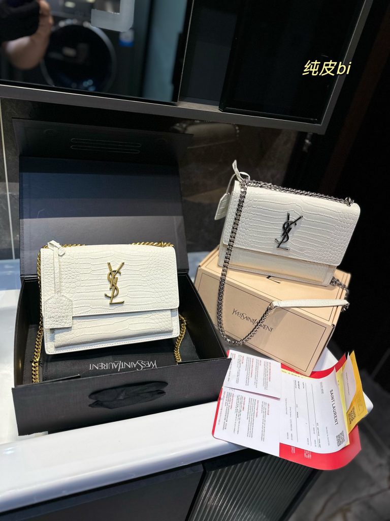 Romantic city, Yves Saint Laurent YSL sunset bag Yves Saint Laurent YSL sunset bag is really synonymous with exquisite romance, low-key and smooth lines, quite wide bag shape, tough style, black glossy cowhide with golden logo makes it more avant-garde Retro size 25cm