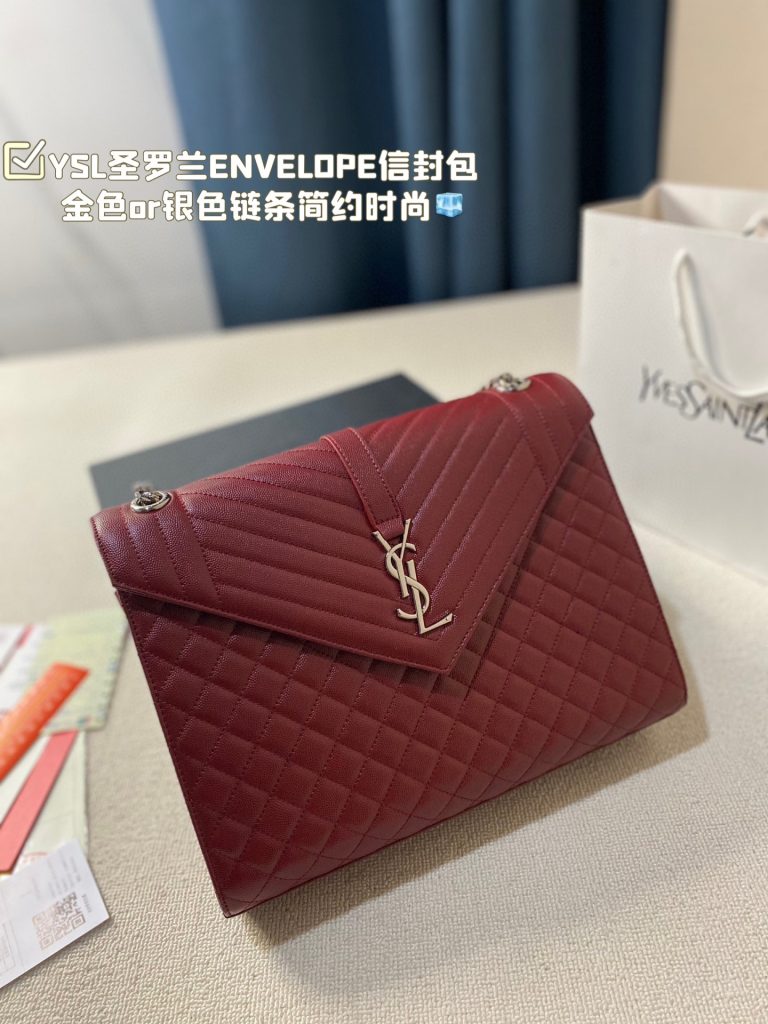 Actual photos of YSL Saint Laurent bag and ENVELO bag. Today I will update you with the envelope design of the ENVELOPE bag, which is simple and fashionable with a gold or silver chain. The square shape of the bag exudes a mature temperament, suitable for commuting and if you like a slightly larger capacity, you can carry it on the shoulder or cross-body. Grained cowhide leather, wear-resistant and easy to care for. Size: 31 25cm