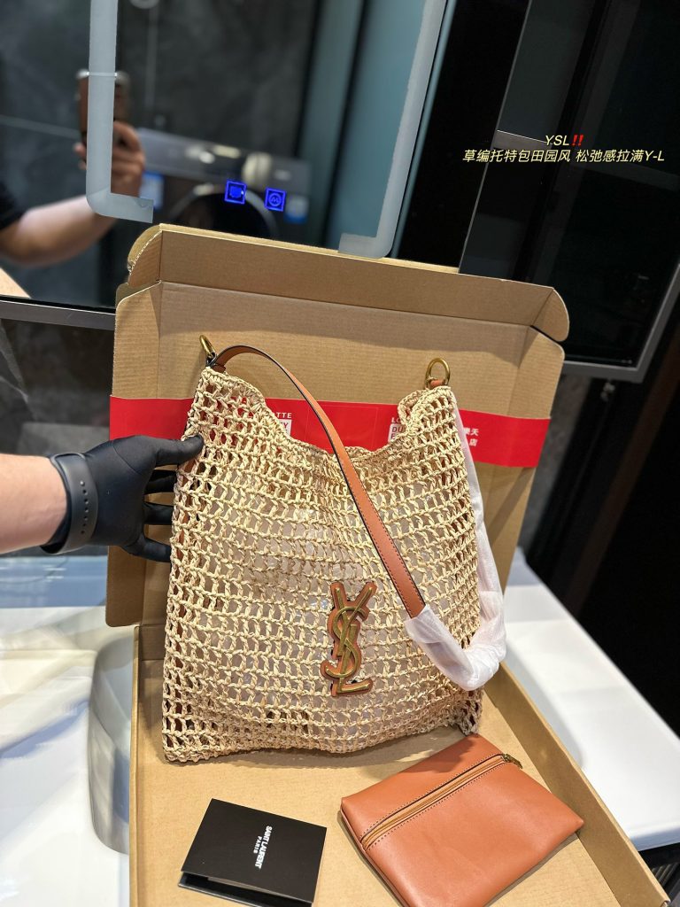 Saint Laurent YSL straw tote bag