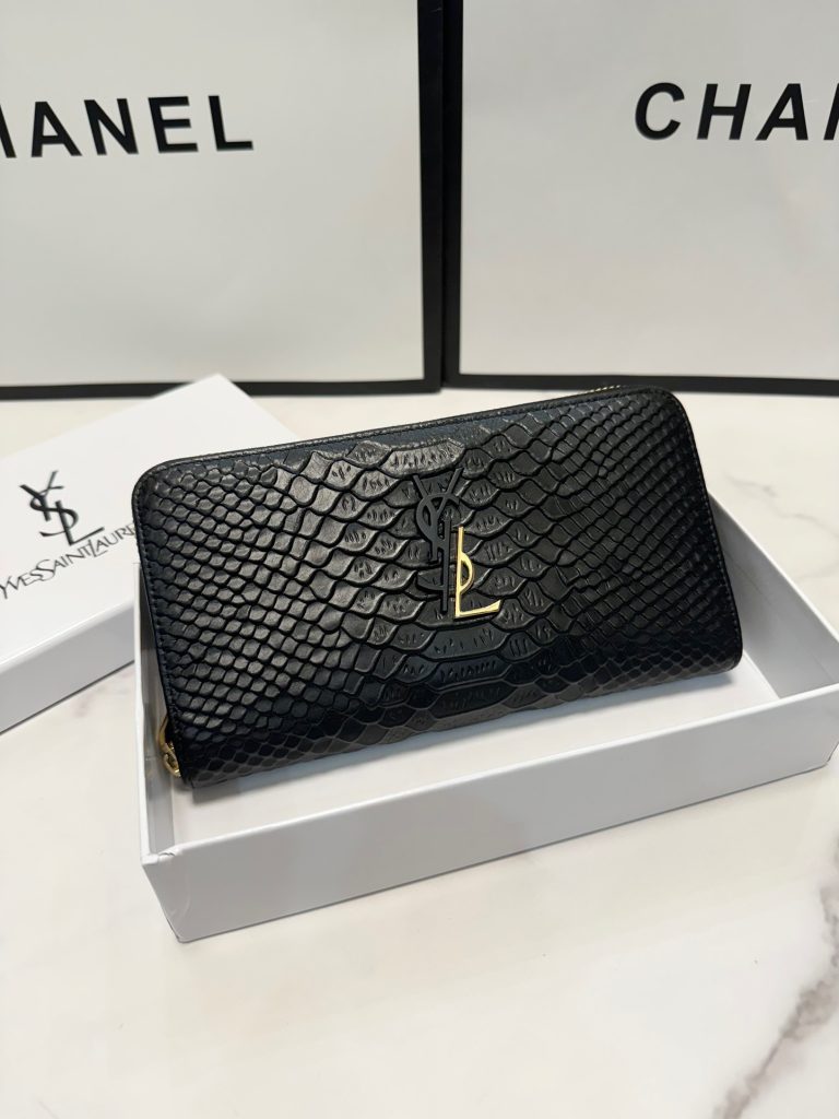 Color Black Size 19×10 Yves Saint Laurent style single zipper wallet clutch imported crocodile pattern calfskin texture first-class unique style, practical cabinet super beautiful and super fashionable must-have item