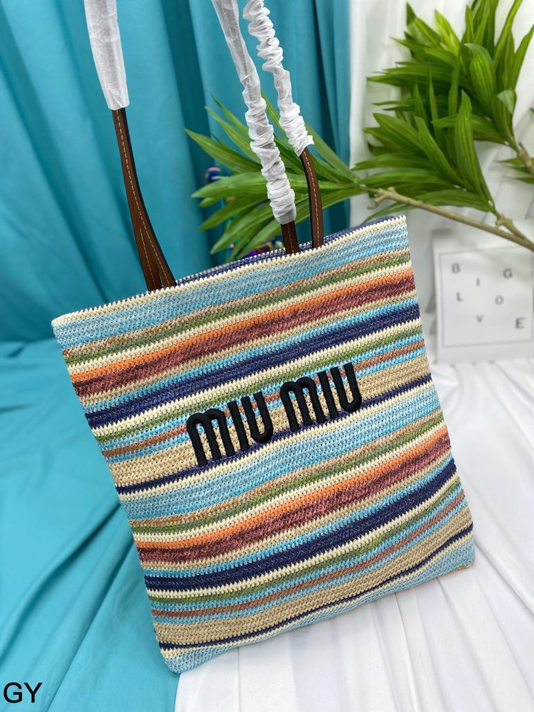 Boxless Miumiu rainbow embroidered straw tote bag. Summer is incomplete without a straw bag. Colorful texture woven and colored strips are woven to make the overall fresh and special. It has a large capacity and is worth buying!
