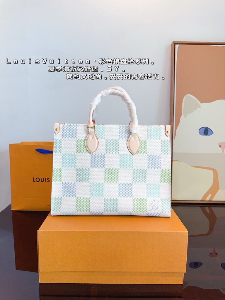 Lv New Shopping Bag Large Flower New Material Color Matching Each side has a different color Size 34*15*27