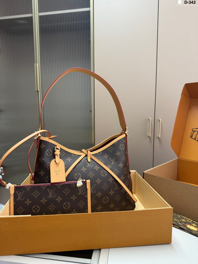 Lv carryall new shopping bag This bag is really beautiful. The essence of vintage is vividly reflected. The retro details inspired by archives are especially commendable. The detachable zipper clutch has crisp lines and rich classic design details. Show unique charm D-342 Size 27.13.22 Folding