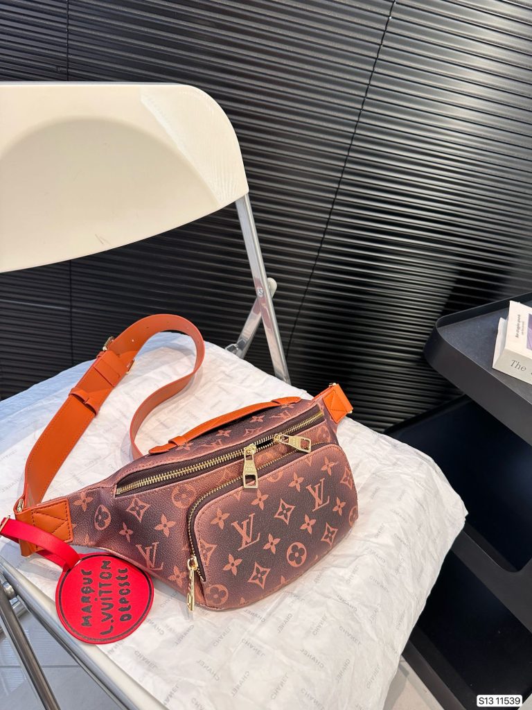 Lv chest bag and waist bag, equipped with an adjustable strap, which can be wrapped around the waist, carried on the shoulder or hung casually on the chest. Zippered pockets on the front and back provide easy access to your phone, cards and keys. Size: 42 17 Item No. 1
