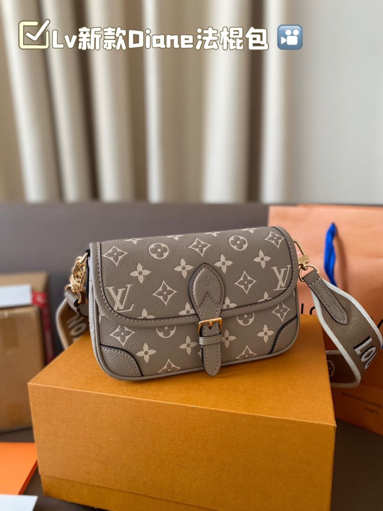 Lv’s new Diane presbyopia baguette catwalk style single-shoulder cross-body underarm bag with floral embroidered shoulder straps with 2 shoulder straps, both removable ruler folding box airplane box