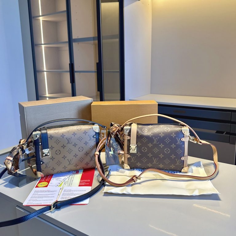 The popular Side Trunk box bag at Lv counter ~ soft box ~ can be carried in hand or shoulder ~ very practical item sought after by many celebrities. Original presbyopic fabric with cowhide top original all-steel hardware. The whole package is cut into floral patterns and the upper body effect is great! Original order quality ~ super high return rate! Original airplane box original folding gift box packaging (size: 23*1