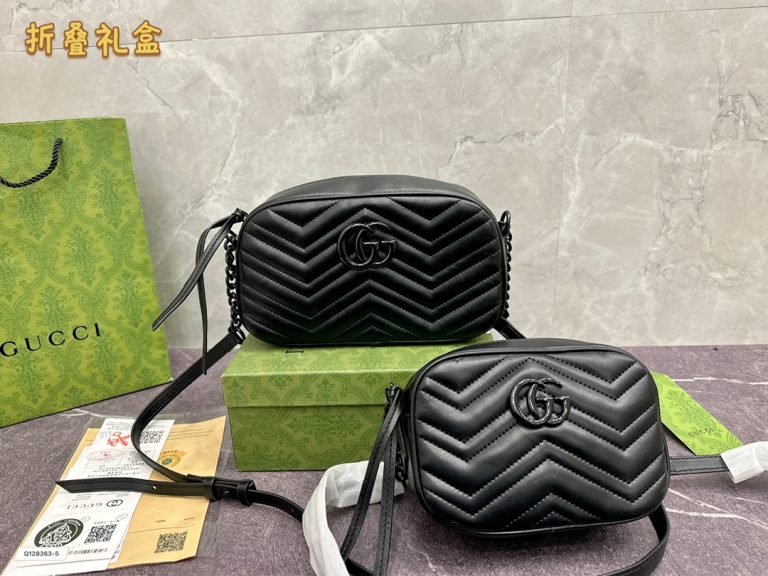 Equipped with a Folding box GUCCI camera bag Gucci Gucci’s new Marmont GG wave embroidered chain bag, the lawless and beautiful sheepskin pattern series, the soft shape with a sense of structure. Another small detail of this bag is that there is a heart on the back, which feels very girly. The size Large size 214 small size 18 12