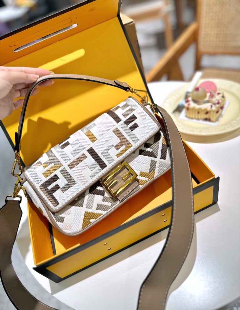 The Fendi Baguette medium bag hit me at first sight. Plus the medium size has a longer shoulder strap, which is very practical. The medium size can hold two mobile phones, wallet, keys, sunglasses, lipstick, and powder without any stress. Although it doesnt look too big, it definitely fits well. Size 2