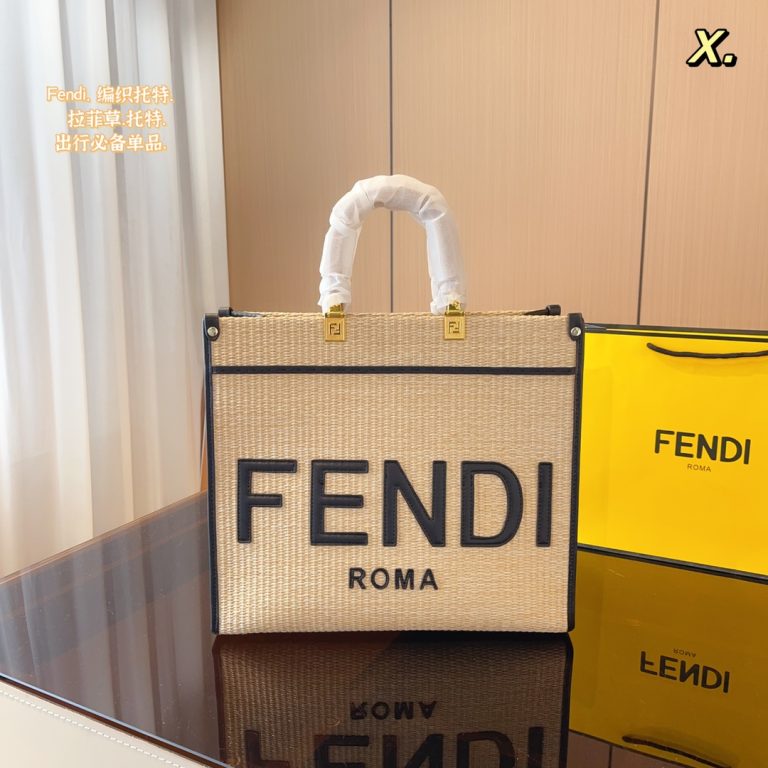 FENDI Fendi 2023 new raffia Sunshine portable shoulder new shopping bag, recommended to everyone. Fendi F catwalk model is very practical and versatile. Compared with many tote bags, this model is very lightweight and durable! The mommy bag has a huge capacity! Size: 35*12*