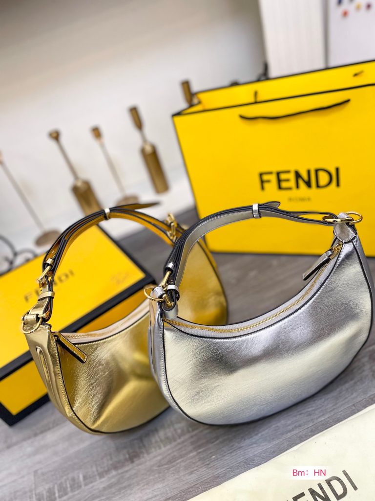 Comes with a folding gift box. Fendis new moon style crescent bag, made of soft calfskin, decorated with FF buckle on the front and contrasting color lining inside! It can be used to enlarge the screen of mobile phones, and can be held in the hand, under the armpit, or slung over one shoulder! Size: 2