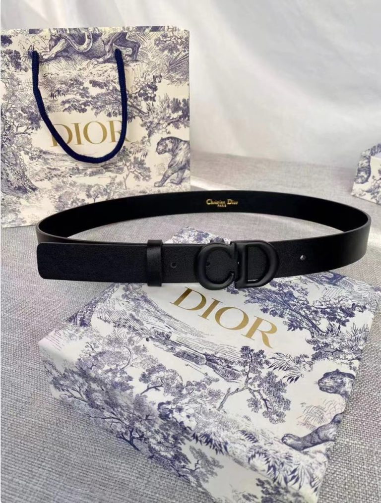 Width 3.0cm Dior (Dior) popular flat wireless belt / painted metal “CD” logo imported double-sided