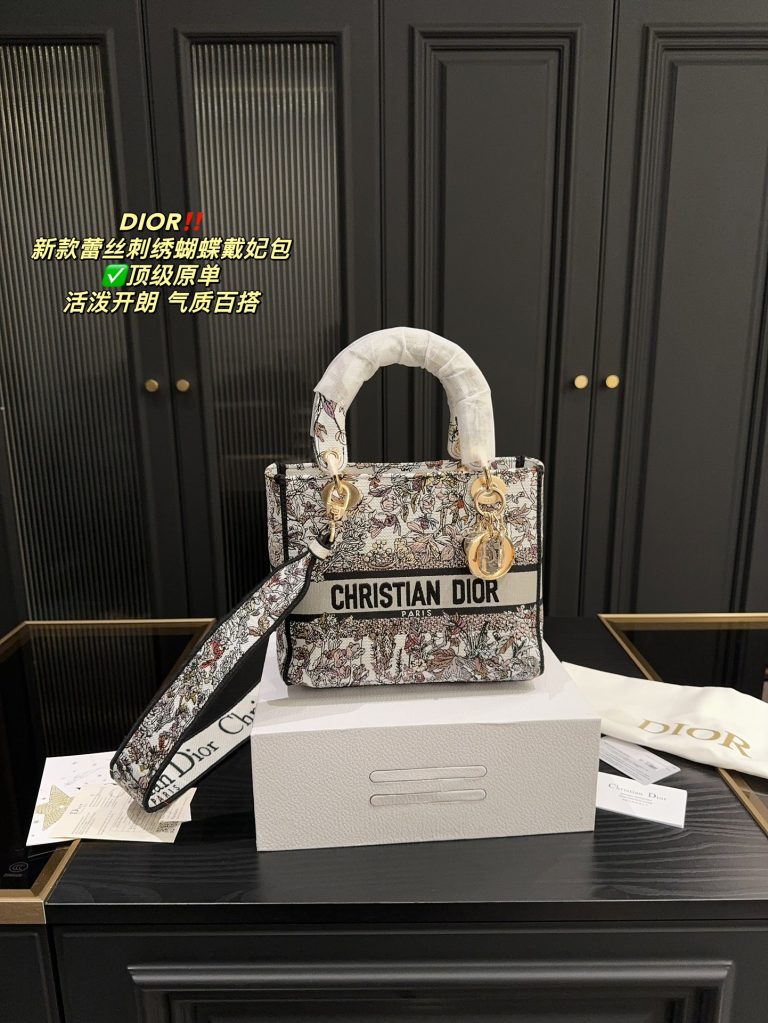 Top original single folding box size 23.2 Dior Princess Diana new lace embroidered butterfly