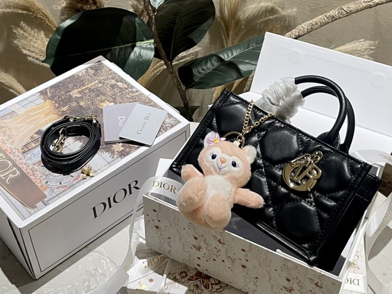 Dior CD Essential mini full leather tote with extra large plaid and cannage pattern quilting. The calf leather has a good texture. A rich little girl who walks gracefully and elegantly. size: