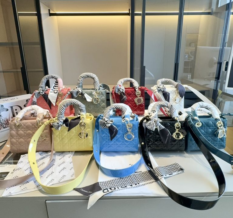 Four-panel patent leather complete packageHigh-end products come with original silk scarvesThe ultra-full 9-color DIOR Dior counter has the same four-panel patent leather Princess Diana bag Lady Dior shows your taste! Comes with wide shoulder strapEverywhere you go, you will turn heads because it uses top-quality replica original hardware! Original cowhide fabric ~ quality comparable to the original! Original airplane box original folding gift box packaging (size: four grids 20*17